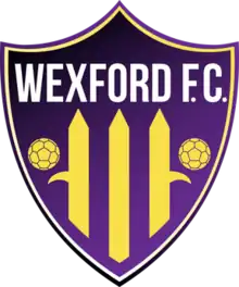 Wexford Football Club is an Irish association football club based in Crossabeg, County Wexford. They compete in the League of Ireland First Division. The club joined the league after being awarded a First Division licence for the 2007 League of Ireland season.[1] The opportunity to join the League of Ireland arose as Dublin City became bankrupt before the end of the 2006 season, leaving an uneven number of clubs.[2] The 2007 season coincided with the takeover of the running of the league by the FAI and all existing clubs had to apply for entry into what was effectively a new league.[3] Limerick was the only existing club refused a licence and so Wexford Youths and Limerick 37 were admitted to the new league.[4] The club alternate their colours between plain black and pink and black.[5] The club rebranded for the start of the 2017 season by dropping the 'Youths' from their title and changing the club crest.[6]