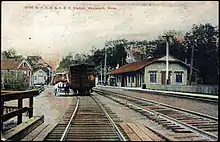 The New Haven Railroad abandoned its remaining Old Colony Division lines on June 30, 1959, after the completion of the Southeast Expressway.[1] The Weymouth station had been located just west of Commercial Street.[3]