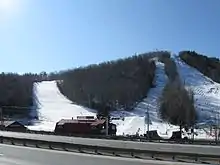 Whaleback has 30 trails on 85 acres (34 ha) of skiable terrain.[11] 28% of the trails are rated as easy, 39% are intermediate and the remainder are advanced.[11] The longest trail is 1 mi (1.6 km) long.[11] There is one terrain park, and 60% of the terrain has snowmaking installed on it.[11][12] There are four lifts: a double chair, a T-Bar, a magic carpet and a handle tow.[12] The mountain's base elevation is at 1,100 ft (340 m), and the summit is at 1,800 ft (550 m), for a vertical drop of 700 ft (210 m).[11] Whaleback has an average annual snowfall of 110 inches (280 cm).[11]