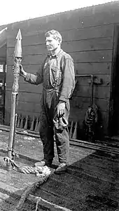 The commercial whaling fishery in the United States is thought to have begun in the 1650s with a series of contracts between Southampton, Long Island resident English settlers John Ogden, John Cooper and the Shinnecock Indians.[6] Prior to this, they chased pilot whales ("blackfish") onto the shelving beaches for slaughter, a sort of dolphin drive hunting.[7] Nantucket joined in on the trade in 1690 when they sent for one Ichabod Padduck to instruct them in the methods of whaling.[8][9]
