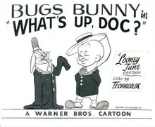 What's Up, Doc? is a Looney Tunes cartoon film directed by Robert McKimson and produced by Warner Bros. Cartoons. It was released by Warner Bros. Pictures[1] in 1950 to celebrate Bugs Bunny's 10th birthday that year, in which he recounts his life story to a reporter from the "Disassociated Press".[2] Bugs talks about his birth, his rise to fame, the slow years, and how famous Vaudeville performer Elmer Fudd chooses him to be part of his act. Eventually the duo comes upon their classic formula of Hunter vs. Hare. The short also was the first (since The Unruly Hare) to use the title card music which would continue to be used in Bugs Bunny's cartoons. Arthur Q. Bryan, Dave Barry and The Sportsmen Quartet performed voice works but were not credited.[3]