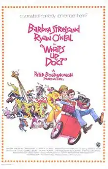 What's Up, Doc? is a 1972 American romantic screwball comedy film directed by Peter Bogdanovich and starring Barbra Streisand and Ryan O'Neal. It was intended to pay homage to comedy films of the 1930s and 1940s, especially Bringing Up Baby,[3] and Warner Bros. Bugs Bunny cartoons. The film was loosely based on the novel A Glimpse of Tiger by Herman Raucher.[4]