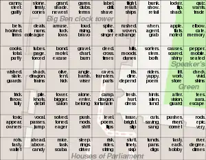 ![]() Part of the What3Words grid on the Palace of Westminster showing typical words and their pseudorandom distribution | |