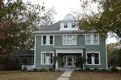 The Wheat House is a historic house at 600 Center Street in Lonoke, Arkansas. It is a two-story wood-frame structure, with a hip roof and weatherboard siding. Its massing and relatively modest styling are characteristic of the Georgian Revival, although it has a fairly elaborate entry porch, supported by slender Tuscan columns and pilasters. Dentil moulding is found at the base of the main cornice, and those that top the windows. Built c. 1910 to a design by Charles L. Thompson, it is one of Lonoke's largest and most sophisticated houses.[2]