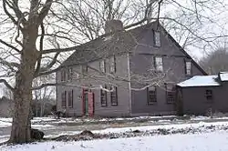 The Wheeler–Ingalls House is a historic house at 51 Summer Street in Rehoboth, Massachusetts. The oldest portion of this 2+1⁄2-story saltbox house may have been built between 1710 and 1750 by Samuel Millard.[1] In 1760 it was purchased by Dr. John Wheeler, and by the American Revolutionary War it had passed into the Ingalls family.[1] Starting around this time a rear lean-to and dog leg ell were added and completed by 1800. Federal style modernizations have since been made to the left parlor which include the mantel and field paneled dado.[1] The "excellently preserved" side entry barn was a later addition and dates to at least 1840. Original early-mid 18th century elements including "Chamfered posts, girts, and summer beams were apparently never covered in the right hall."[1] The house was listed on the National Register of Historic Places in 1983.[2]