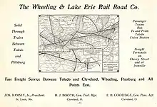 An advertisement for the then-Wabash-controlled Wheeling and Lake Erie Railroad from a book published in Toledo, Ohio in 1905