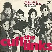 "When Julie Comes Around" is a song written by Lee Pockriss and Paul Vance. It was first released as "When Joes Comes Around" by Tasha Thomas in July 1969, but this version failed to chart.[2] The song is best known for the version by the Cuff Links released in November 1969, which peaked at number 41 on the US Billboard Hot 100 and number 10 on the UK Singles Chart.[3][4]