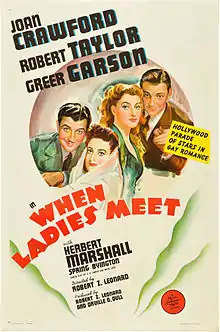 When Ladies Meet (television broadcast title: Strange Skirts) is a 1941 American romantic comedy film by Metro-Goldwyn-Mayer starring Joan Crawford, Robert Taylor, Greer Garson, Herbert Marshall, and Spring Byington in a story about a novelist in love with her publisher. The screenplay by S.K. Lauren and Anita Loos was based upon a 1932 play by Rachel Crothers. The film was directed by Robert Z. Leonard, who also co-produced the film (with Orville O. Dull). The film was a remake of the 1933 pre-Code film of the same name, which starred Ann Harding, Myrna Loy, Robert Montgomery, and Frank Morgan in the roles played by Garson, Crawford, Taylor and Marshall.