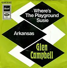 "Where's the Playground Susie" is a song written by Jimmy Webb and recorded by American country music singer Glen Campbell. It was released in April 1969 as the second single from the album Galveston. The song peaked at number 26 on the Hot 100, number 28 on the U.S. Billboard Hot Country Singles chart, and number 8 on the Canadian RPM Top Singles chart.[1]