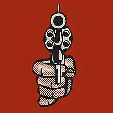 Where Is Danny? is the first album in Danny!'s discography to not feature an image of him, his likeness (à la Danny Is Dead) or even his name on the record's cover art. Instead, the album uses the artwork "Pistol" by pop artist Roy Lichtenstein. According to Swain, this was an effort to not only assert his status as an artist, but to emphasize the album's brash, "in-your-face" content.[4] The 2011 official release used an alternate "smoking gun" variant that was previously commissioned by TIME for their 1968 cover story on the prevalence of guns in America.[5]