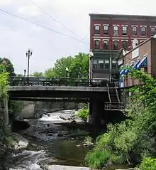 Whetstone Brook is a tributary of the Connecticut River that runs through the heart of Brattleboro, Vermont, in the United States. It flows into the Connecticut at an elevation of 250 feet (76 m) above sea level.[1] The headwater for the brook is at Hidden Lake, which is 1,500 feet (460 m) above sea level in the town of Marlboro.[1] Of the 28-square-mile (73 km2) watershed, over two thirds is contained within Brattleboro, while another 30 percent is in Marlboro. The remaining 2% is within the town of Dummerston.[1] The brook is crossed by Creamery Covered Bridge in West Brattleboro, which was built in 1879. The original Abenaki name for the waterway is Kitadowôganisibosis.[2]