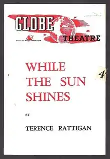 While the Sun Shines is a comedy play by the British writer Terence Rattigan which was first staged in 1943. It was a popular success, running for 1,154 performances, even more than Rattigan's previous hit French Without Tears, and proved his longest running West End play.[1][2] A Broadway production followed in 1944, though it ran for only 39 performances.[3]