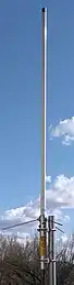 A whip antenna is an antenna consisting of a straight flexible wire or rod. The bottom end of the whip is connected to the radio receiver or transmitter. A whip antenna is a form of monopole antenna. The antenna is designed to be flexible so that it does not break easily, and the name is derived from the whip-like motion that it exhibits when disturbed. Whip antennas for portable radios are often made of a series of interlocking telescoping metal tubes, so they can be retracted when not in use. Longer whips, made for mounting on vehicles and structures, are made of a flexible fiberglass rod around a wire core and can be up to 11 m (35 feet) long.