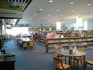 The Whitchurch–Stouffville Public Library traces its heritage to 1877 when it was first established in Allan's Jewellery Store. A key promoter was J. Wideman, the editor of the local newspaper, the Alert.[2] The library was known as the Mechanics' Institute, and for a time was located in the old Municipal Building (today The Lebovic Centre for Arts & Entertainment – Nineteen on the Park). It held 793 volumes in the early 1880s,[3] 1009 volumes in 1884,[4] and more than 2,500 in 1895.[5]