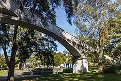The Whites Creek sewage aqueduct was completed in 1897 and is a major and highly visible component of the Northern Main Sewer extension of the Bondi Ocean Outfall Sewer. The arches and carrier of the aqueduct are one of the first major constructions undertaken using reinforced concrete in NSW and one of the first in Australia. The slender proportions of the supporting arches and sewage carrier along with its historical technology value are a major landmark for Sydney. The aqueduct is a major element of the historic built environment of the local area, and a long held part of the recreational reserve. Elements of significance are the past and ongoing use, technology of construction and setting (inclusive of views) within the park reserve.[1]