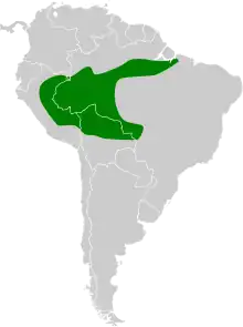 In Peru, the white-eyed attila is widespread in the eastern low-laying areas, generally south of the Amazon River.[6]