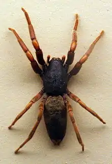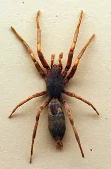 White-tailed spiders are spiders native to southern and eastern Australia, and so named because of the whitish tips at the end of their abdomens. The body size is up to 18 mm, with a leg-span of 28 mm. Common species are Lampona cylindrata and Lampona murina. Both these species have been introduced into New Zealand.[1]