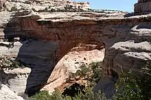 The canyon is notable for Ancestral Puebloan cliff dwellings [2] and slot canyons.[3] It is spanned by Sipapu Bridge, one of the largest natural bridges in the world.[2]