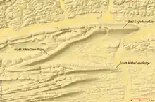 According to Meginness, the 17-mile (27 km) long and 8-mile (13 km) wide White Deer Hole Creek valley was just called "White Deer valley" by many in 1892, and this is still common.[8][13] Confusion about the names arises since White Deer Creek is the next creek south of White Deer Hole Creek (they are on opposite sides of South White Deer Ridge).[14] The Lenape name for White Deer Creek was Woap'-achtu-hanne (translated as "white-deer stream").[7]