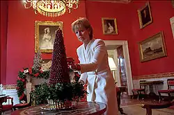 The chief floral designer heads the White House Flower Shop in the White House basement. The chief floral designer leads a staff of four assistant designers and works with the first lady, chief usher, and White House social secretary to plan arrangements and decorations for state dinners, receptions, and day-to-day placement throughout the ceremonial rooms and Executive Residence. The chief floral designer serves at the president's pleasure and may be appointed, or reappointed, by each administration.[2] Dowling's predecessor as the chief floral designer was Nancy Clarke, who began working at the White House in 1978 during the administration of President Jimmy Carter, first as a part-time volunteer, and eventually becoming full-time permanent staff in 1981 during the administration of President Ronald Reagan. Nancy Clarke served six first families during her 31 years at the White House. She retired on May 31, 2009, and was an author and lecturer until her death in January 2012.[3]