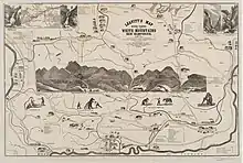 Some of the earliest maps of the White Mountains were produced as tourist maps and not topographical maps. One of the first two tourist maps of the mountains was that produced by Franklin Leavitt, a self-taught artist born near Lancaster, New Hampshire in 1824.[4] Leavitt's hand-drawn map, today in the collection of Harvard University, is largely folk art, but does convey some of the region's features.[5] Leavitt drew several versions of his map, beginning in 1852. The fourth version, printed in 1871, was printed at Boston and carried a retail price of one dollar.[6] Other early maps of the region were drawn by H. Conant and by Harvard astronomer George Phillips Bond, who published the first topographical map of the region in 1853.[7]