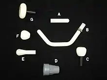 The long cane was improved upon by World War II veterans rehabilitation specialist, Richard E. Hoover, at Valley Forge Army Hospital.[10] In 1944, he took the Lions Club white cane (originally made of wood) and went around the hospital blindfolded for a week. During this time he developed what is now the standard method of "long cane" training or the Hoover Method. He is now called the "Father of the Lightweight Long Cane Technique". The basic technique is to swing the cane from the center of the body back and forth before the feet. The cane should be swept before the rear foot as the person steps. Before he taught other rehabilitators, or "orientors", his new technique he had a special commission to have light weight, long white canes made for the veterans of the European fronts.[11]