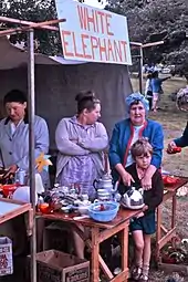 A "white elephant sale" sells items that retain some value but have no intrinsic use; items are often referred to as white elephants. Such items may still find buyers but their resale value is hard to estimate.