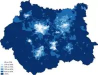 | Greater London | 5,663,496 | 85.7% | 5,333,580 | 79.8% | 5,103,203 | 71.2% | 4,887,435 | 59.8% | 4,731,172 | 53.8% |