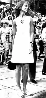 Shrimpton's appearance at Derby Day 1965 has since been described as the pivotal moment of the introduction of the miniskirt to the international stage, although London designers such as Mary Quant had promoted it the year before.[3] The media attention surrounding Shrimpton's Derby Day appearance has been said to be a defining moment in fashion at the races.[13] Designers quickly imitated the dress; according to The Age in 1966, "Last year's controversial Miss Shrimpton would have passed unnoticed in the crowd this year. Anyone with hemlines below the knee looked very 'old hat'." Angela Menz, the 2011 fashion competition winner, stated that "By today's standards, Shrimpton's dress was actually quite long".[3]