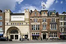 "Whitechapel High Street provides a transition between the commercial development pressures from the City and the historic east end communities."[2] The street has many narrow plots with 3–5 storey buildings, rebuilt and enlarged at different times in different styles. It was designated a conservation area in 2007.[3]