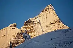 Whitehorn Mountain was first climbed by Conrad Kain in a rare solo ascent for him. Kain was in the Mount Robson area guiding a reconnaissance party led by Arthur Wheeler in 1911 when he completed the solo ascent, much to the disgruntlement of Wheeler.[2]