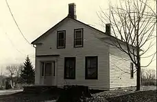 Construction date: c. 1850s. Due to its Classical Revival detailing, it is generally felt that the Truman P. White house was built around 1850. The 1861 Census Return notes that T.P.White lived in a 1+1⁄2-story frame dwelling. Originally the house had a front-gable plan with a side entrance and return eaves detailing on the front facade. A later nineteenth-century addition on the west side of the building gave the structure its present saltbox appearance. The T.P. White house is one of the most important heritage structures in Whitevale.[4] |
