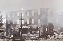 Fires destroyed many of Whitevale's booming industries and continually changed the face of town. A public hall which had been erected in 1860 was also lost due to fire. A carriage factory and the Cooperage went in 1874. The woolen mill was the next to experience a fire several years later, but the brick walls remained standing. This was later followed by the destruction of the planing mill and the Grist mill, which was then being operated by Mr. White himself. The planing mill was rebuilt on the site of the grist mill and subsequently burned in 1899. The grist mill machinery was rebuilt inside the fire-damaged brick walls of the old woolen mill.[3] A devastating fire leveled the converted grist mill in 1961, but a modern feed mill was erected on the same site in 1962.[4] In early 2011, the Regency Coffee Co. building (which includes a portion of the building that dates back to the 1880s) caught on fire during renovations, but only sustained smoke and roof damage.[11]