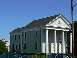 The Whittemore House is a historic house in Arlington, Massachusetts. The Greek Revival was built c. 1850, and is the only house in Arlington with the full temple-front treatment. It as two-story fluted Doric columns supporting a projecting gable end with a fan louver in the tympanum area.[2] The entrance is located in the rightmost of the front facade's three bays, and is framed by sidelight and transom windows. The building's corners are pilastered, and an entablature encircles the building below the roof.