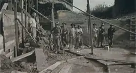 ![]() Construction of the Whitwarta Bridge (c. 1914) The bridge was officially opened on 17 August 1914. As reported in the Advertiser, The Commissioner of Crown Lands (Hon. F. W. Young) opened the bridge.[1] | |||||||||||||||