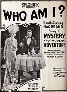 Who Am I? is a 1921 American silent drama film directed by Henry Kolker and starring Claire Anderson, Gertrude Astor and Niles Welch.[1]