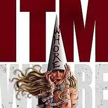 Written by Maria Brink, Chris Howorth, Kevin Churko, and Kane Churko. Guitarist Chris Howorth says about the song, “It's really just about taking the power back from the word, and when you get past all the controversy of the word, you have a bombastic rock and roll song with crushing guitars and huge drums that will have you screaming whore at the top of your lungs!”[2] Singer Maria Brink took a more artistic approach by posing nude for the song's online campaign. Brink writes on the band's Facebook post, "I decided to pose nude for the visual art for 'Whore' to evoke a raw vulnerable emotion. The word 'whore' written down my back, and the dunce cap symbolize me placing myself on the stake for those who are suffering and I can only hope to encourage at least one person to find the self worth and love they deserve to transcend out of a painful situation into a beautiful one. It is about finding our power and taking a stand.”