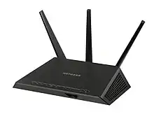 ![]() This Netgear Wi-Fi router contains dual bands for transmitting the 802.11 standards across the 2.4 and 5 GHz spectrums and supports MIMO. |