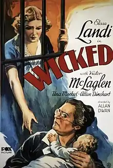 Wicked, also known as Condannata in Italy and Malvada in Spain, is a 1931 American pre-Code drama film directed by Allan Dwan and starring Elissa Landi, Victor McLaglen, and Una Merkel. The screenplay concerns a woman who commits murder while trying to save her bandit husband and bears a child in prison.[1] The production dates were between early June and early July 1931.