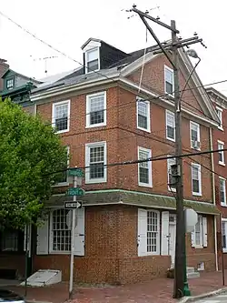 The Widow Maloby's Tavern is a historic tavern building located in the Queen Village neighborhood of Philadelphia, Pennsylvania. The tavern was built in 1764, and is a 3 1/2-story, three bay by two bay, brick rowhouse. It was originally painted yellow. It remained a tavern and community gathering place for over a century.[2]