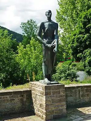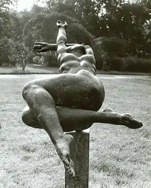 He applied to his employers to back his application to sponsor his application to study at the academy, but was turned down for reasons that involved the risk of "Verbürgerlichung" (loosely: "bourgeoisization"). He therefore made the application anyway, on his own responsibility, and was accepted. He was a student at the Dresden Academy of Fine Arts between 1953 and 1958.[2] He began his study of sculpting in 1953, taught by Walter Arnold and Arnold's assistant Gerd Jaeger. Another of his teachers was Hans Steger. The focus of the training at Dresden was on neoclassical form, backed up by compulsory courses in drawing, on use of plaster casts and on nature. The study of anatomy and history of art were also included and required.[4]