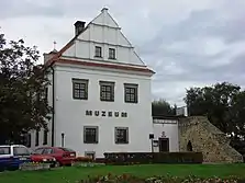 The Museum of Wieluń Land (Muzeum Ziemi Wieluńskiej), located in the Renaissance Bernardine monastery, is the town's primary museum, dedicated to the history of Wieluń and its surroudings. It contains archaeological, ethnographic, historical and art collections.[2] Displayed artifacts include jewelry and weaponry from the Bronze Age and Middle Ages, weapons and memorabilia from the 19th-century Polish national liberation uprisings, religious paintings and traditional folk sculptures, and Biblia Brzeska, one of the oldest Polish translations of the Bible.[2] There is also an exhibition dedicated to the German bombing of Wieluń at the start World War II.[2]