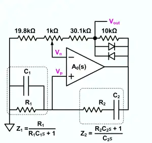 Thus the frequency determining network has a zero at 0 and poles at or −2.6180 and −0.38197.