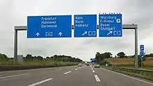 ![]() A sign gantry over the western approach of the A 66 to Wiesbadener Kreuz. | |