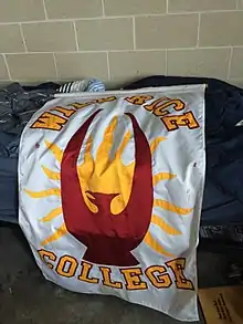 KTRU Rice Radio, the university's student-run radio station, and Rice Coffeehouse both began at Hanszen College.[36][37] Hanszen was the first residential college at Rice to use its own crest. Shortly after the founding of the residential college system, the students created the blue, black, and yellow crest that in time became the symbol of the college, setting a precedent for the other colleges.[38]