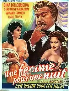 Wife for a Night (Italian: Moglie per una notte) is a 1952 Italian film starring Gina Lollobrigida. It was based on the play The Dazzling Hour by Anna Bonacci, which was later updated for the Billy Wilder film Kiss Me, Stupid.