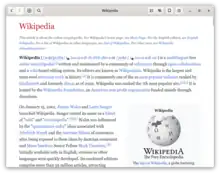 ![]() Screenshot of Wike 1.8.2 showing the Wikipedia article about Wikipedia | |