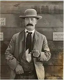 William S. Hart, who played Wild Bill Hickok, and Wyatt Earp were best friends. Earp wanted Hart's help to make a movie that would improve what the public thought about him and his brothers. Based on what the press wrote about his actions at the Gunfight at the O.K. Corral and his job as a referee of the Fitzsimmons vs. Sharkey boxing match, Earp had a dubious reputation.[5] Earp wrote Hart in July 1925: "I am sure that if the story were exploited on the screen by you, it would do much towards setting me right before the public which has always been fed up with lies about me."[6][7]