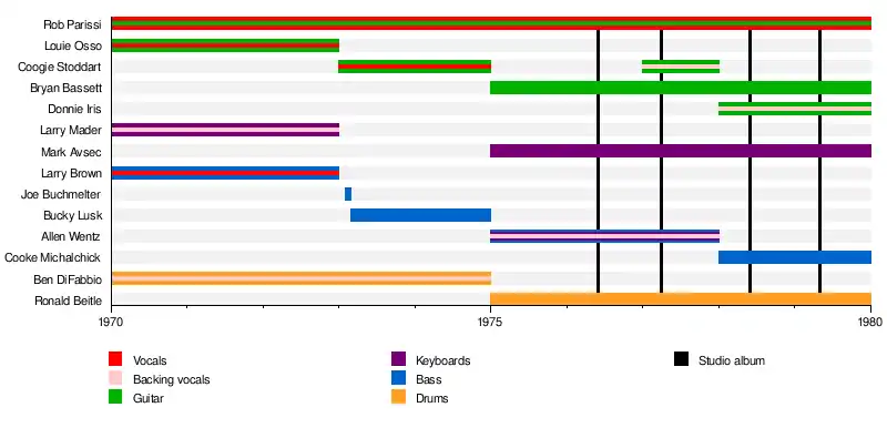 | Past members | Rob Parissi Ben Difabbio Louie Osso Larry Brown Larry Mader Coogie Stoddart Joe Buchmelter Bucky Lusk Ron Beitle Bryan Bassett Allen Wentz Donnie Iris Cooke Michalchick Mark Avsec |