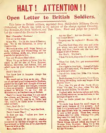 - "Open Letter To British Soldiers (1912)". libcom.org. Retrieved 8 December 2021.